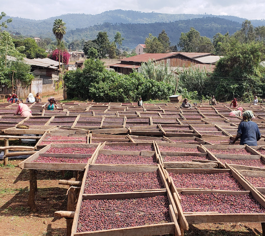For this coffee, ripe cherries are placed on raised beds and canvasses immediately after they are received at the dry mill. They are moved multiple times a day throughout the average 1 month drying process to ensure an even and uniform average moisture content across the lot. Once the coffee is adequately dried, it is placed into bags and stored in a cool and dry warehouse, hulled, milled, and prepped for export.